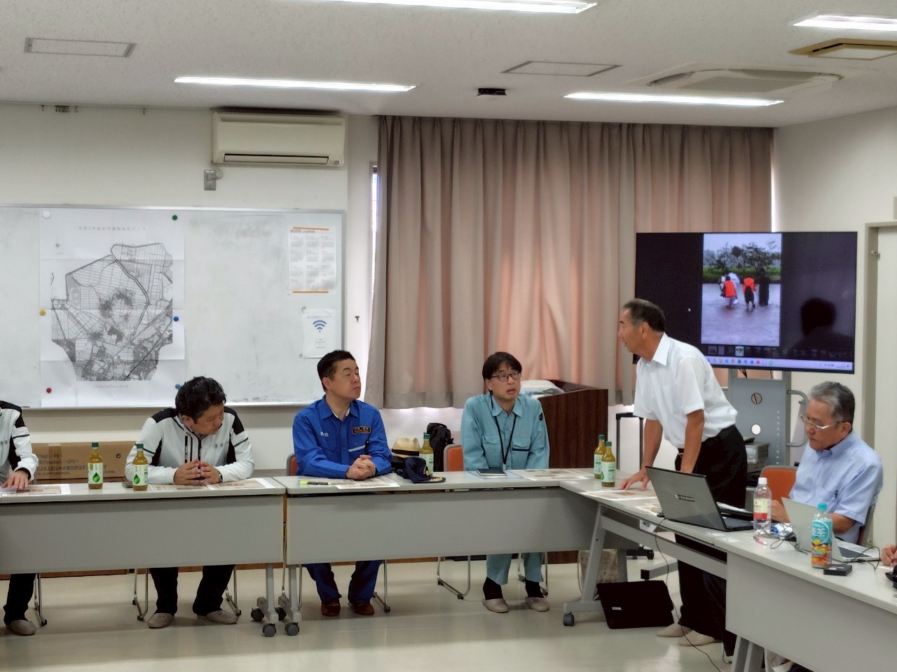 ◯大浦、東蚊爪、湖南地区の公民館や小学校では、公民館関係者や地区の皆さんから画像を基に当日の状況を詳細に語って頂いたり、被災した民家や事業所に赴いたりしました。