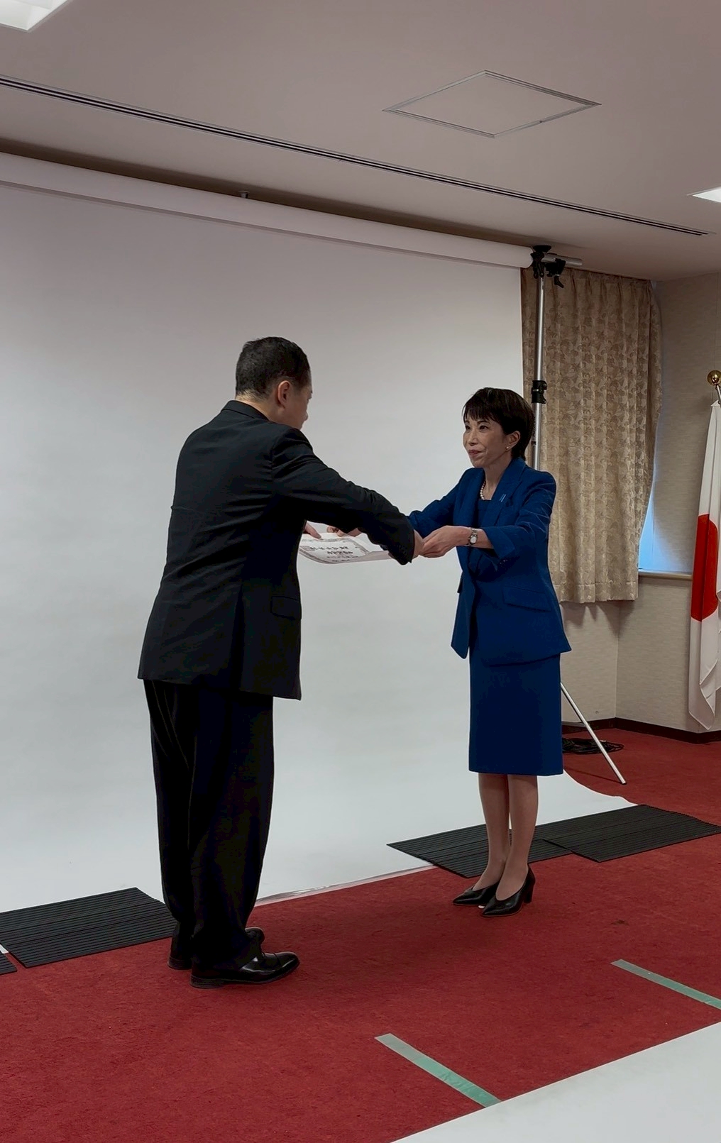 本会議前の自民党両院議員総会にて高市総裁から力強く決意表明がありました。また、本会議後は自民党本部で高市総裁から公認証を交付されました。