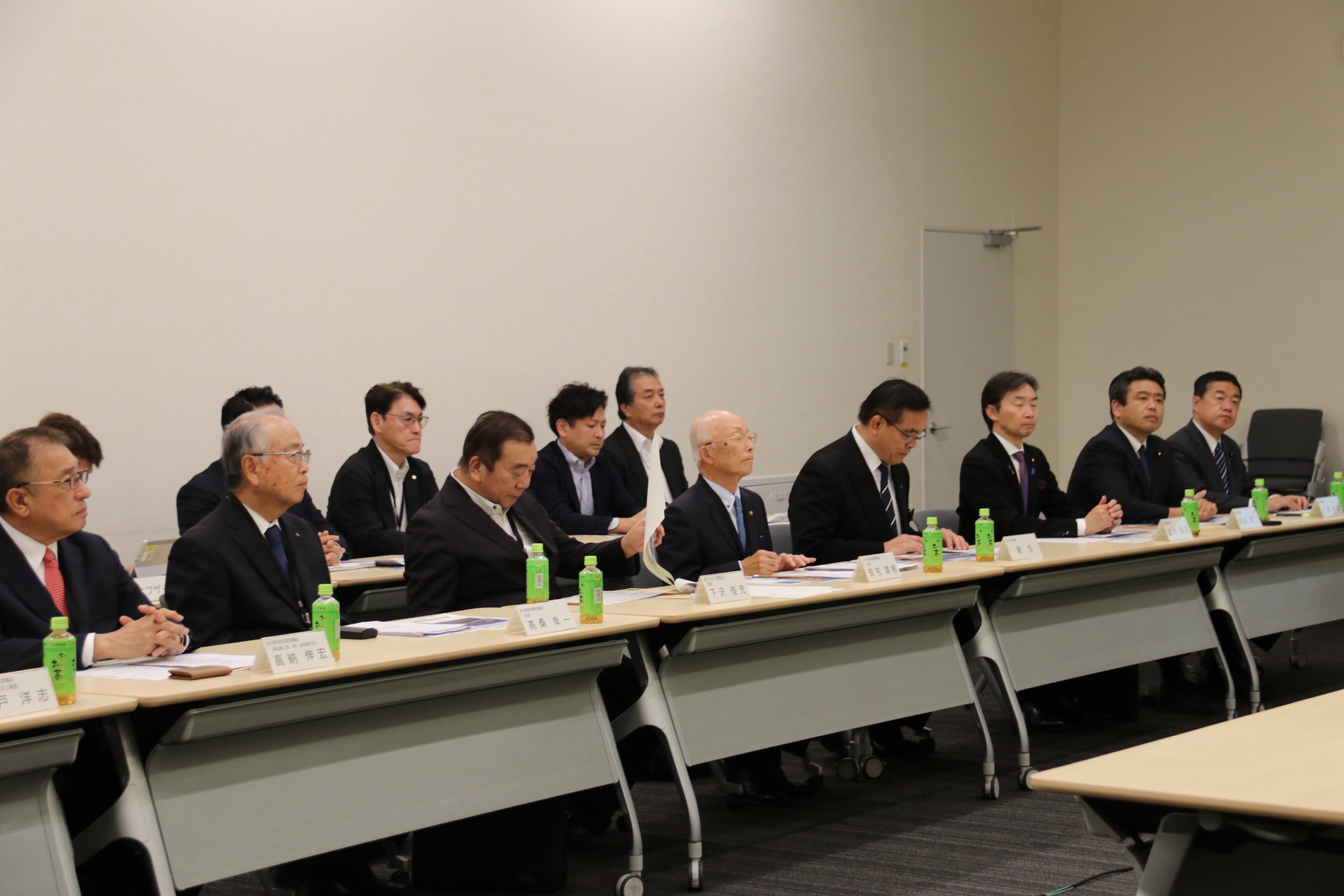 国土交通省の安部港湾局長や北陸地方整備局、歴代の港湾局長経験者を招いて開催され、地元の下沢県議や馳知事、金沢港の関連団体の役職を務める経済界の方々などから、現状の課題や要望を伝えました。